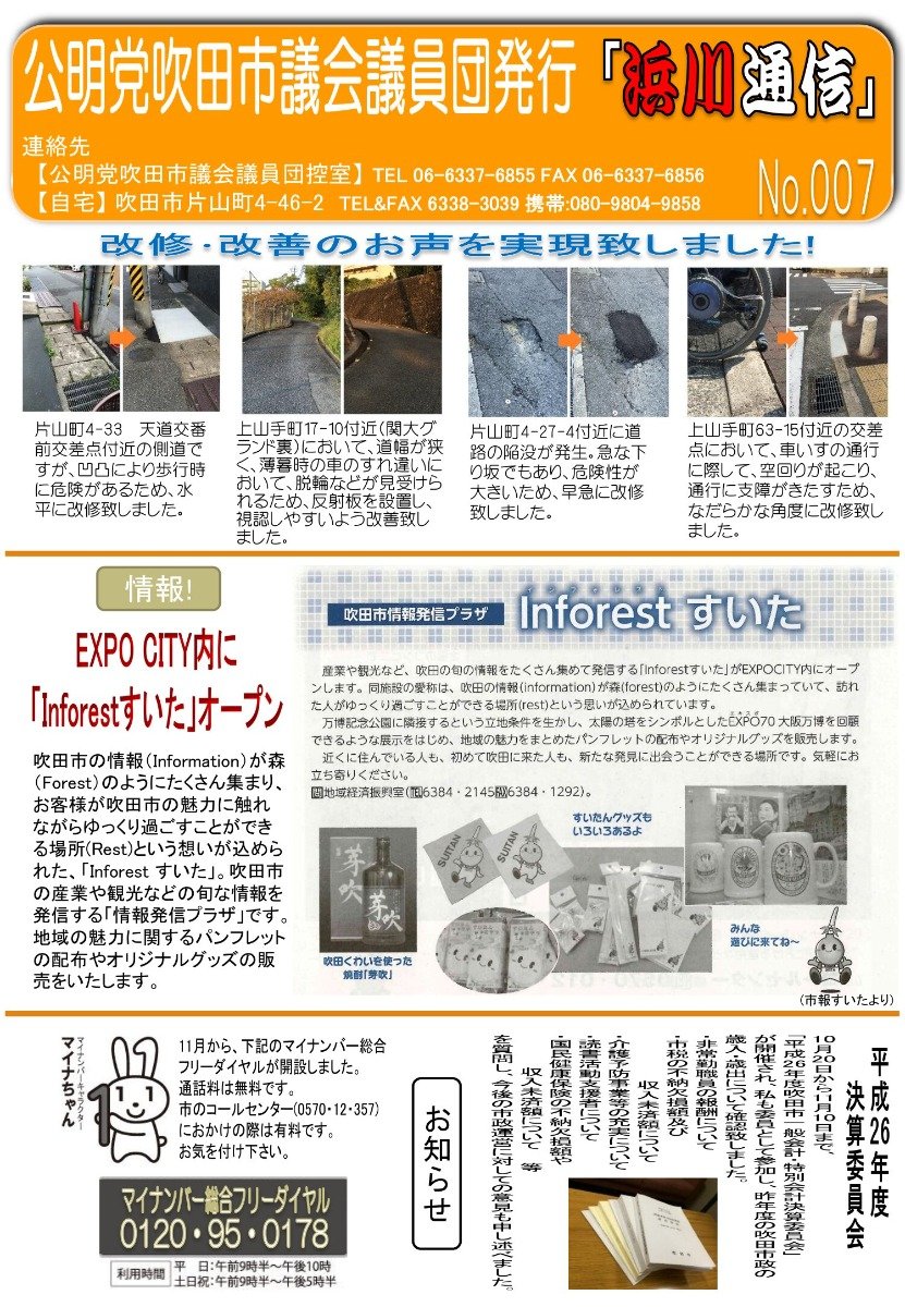 吹田市議会議員|浜川つよし