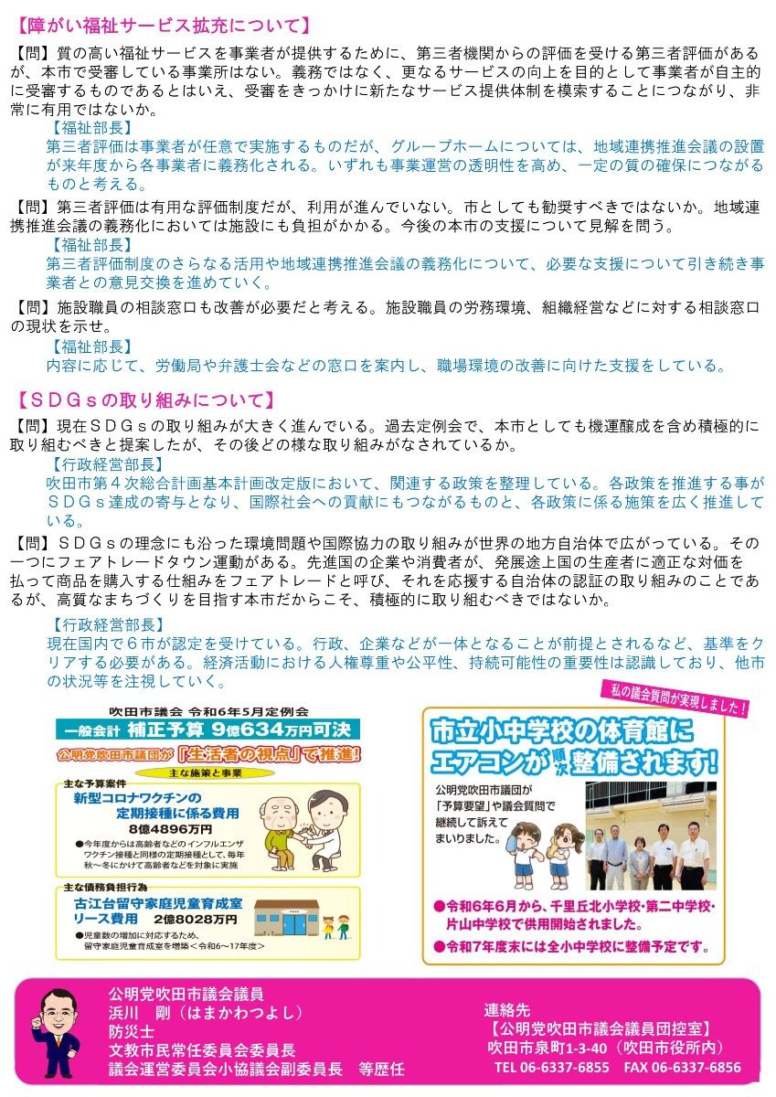 吹田市議会議員|浜川つよし